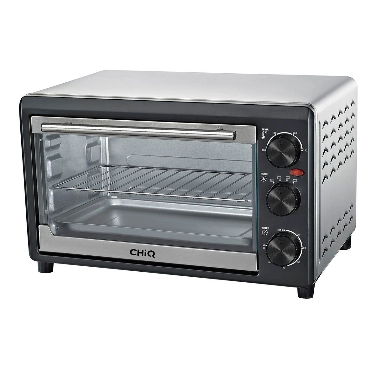Descripción Capacidad de 25 litros Control mecánico Hecho de acero inoxidable Funciones: Asar, dorar, tostar y gratinar Selector de temperatura Características MarcaCHiQColorGris con negroNúmero de parteCQXTO25F1M1SFuncionesAsar, dorar, tostar y gratinarCapacidad25 litrosSelector de temperaturaSíTimmerSíGarantía limitada1 año En la Caja 1x CHiQ Horno Tostador 10 Litros Control Mecánico Puerta Inoxidable (CQXTO10T1M1S) 1x Bandeja 1x Parrilla